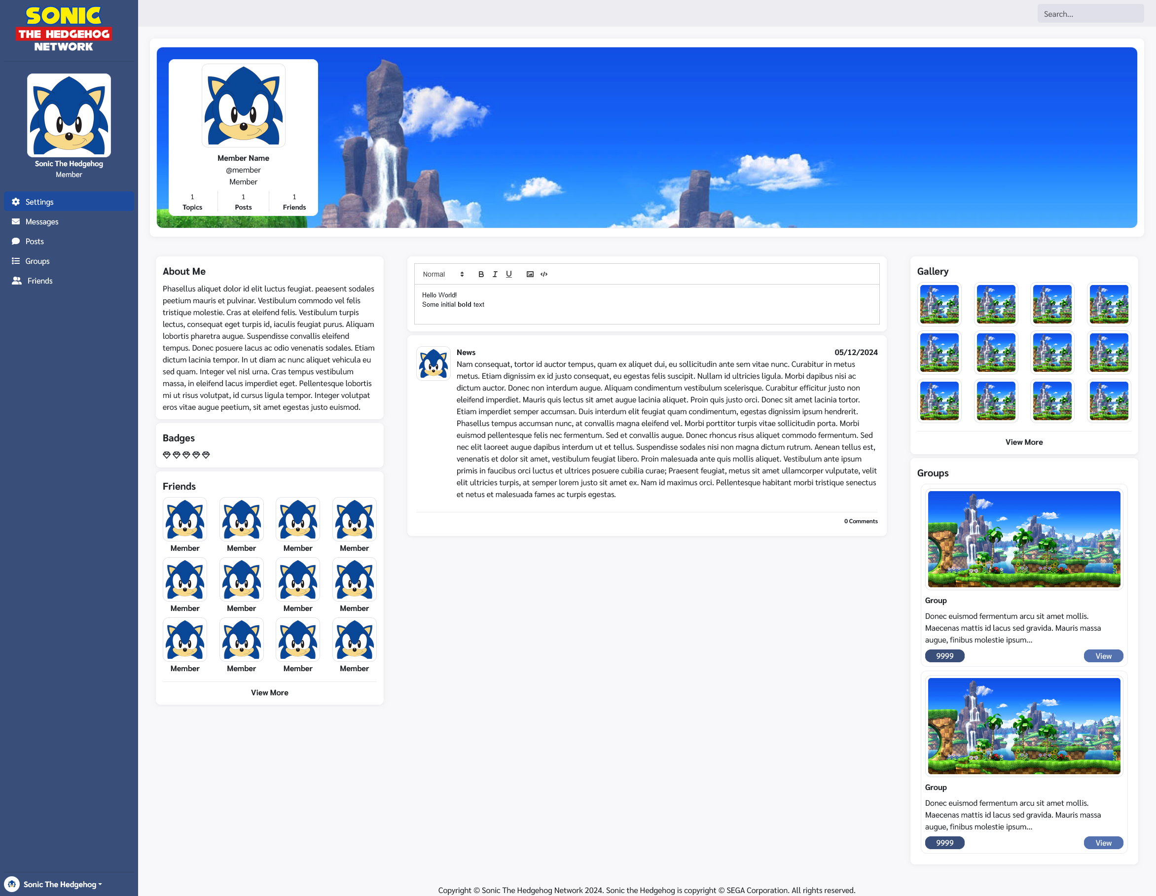 Sonic The Hedgehog Network will be a Sonic community where members can interact with other members and interactive areas of the website. Members will be able to have a unique member name, create a blog, create a group, earn badges and ranks, roleplay, play games, and more.